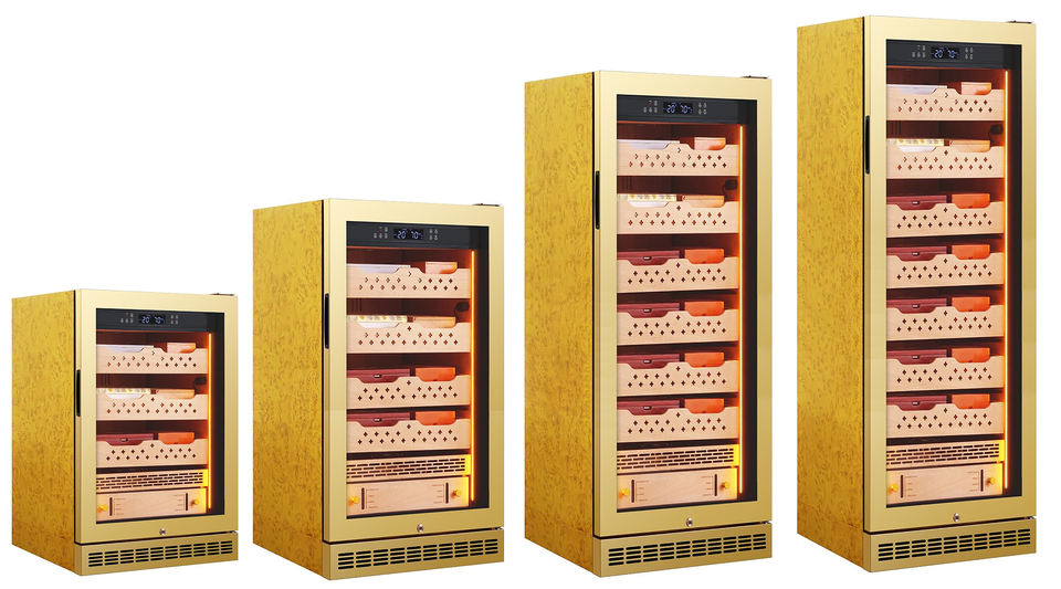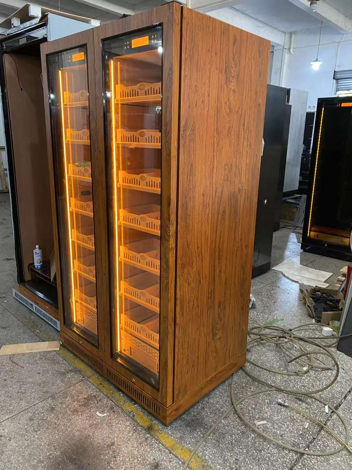 ตู้เก็บซิการ์แบบสองประตู ขนาดใหญ่ 860 ลิตร ควบคุมอุณหภูมิได้ ใช้แก๊ส ทำจากไม้ซีดาร์สเปนแท้ พร้อมโครงสร้างสแตนเลส และคอมเพรสเซอร์คุณภาพสูง แบ่งออกเป็นสองโซน