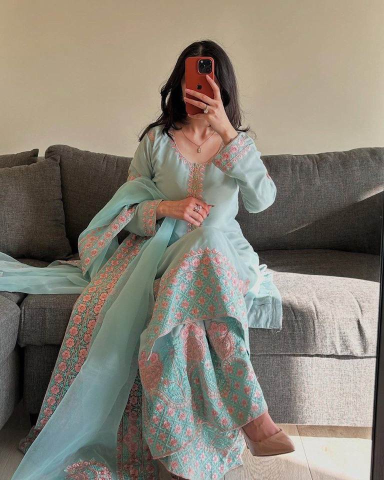 ชุดชาราร่าทรงเข้ารูปผ้าจอร์เจตต์ปักลายฟ็อกซ์ดีไซน์ใหม่ งานปักแน่น ยืดหยุ่น สำหรับงานปาร์ตี้