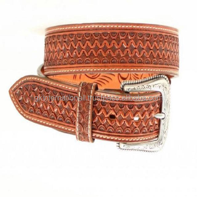 Full Stitched Handmade Top Quality Western Leather Tooling Belt for Unisex in All Custom Sizes & Colors With Floral Pin Buckle