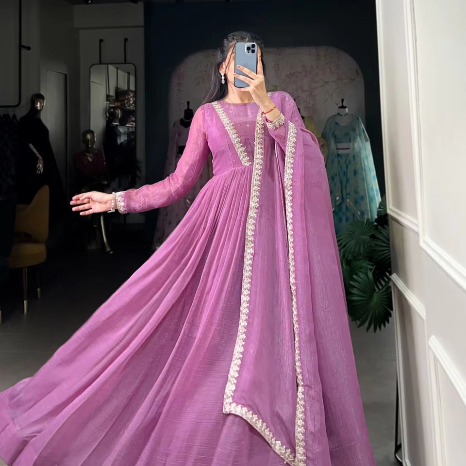 Product Name:Silver Glory Thread Embroidery Gown With Dupatta