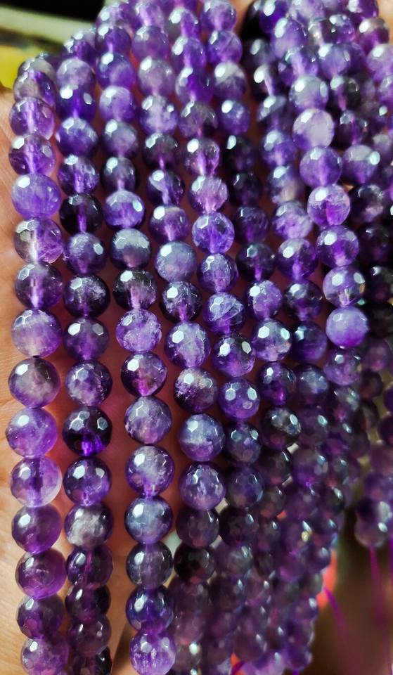 Full Strand Amethyst Faceted Round Gemstone Beads Natural Stone For DIY Jewelry Making Wholesale