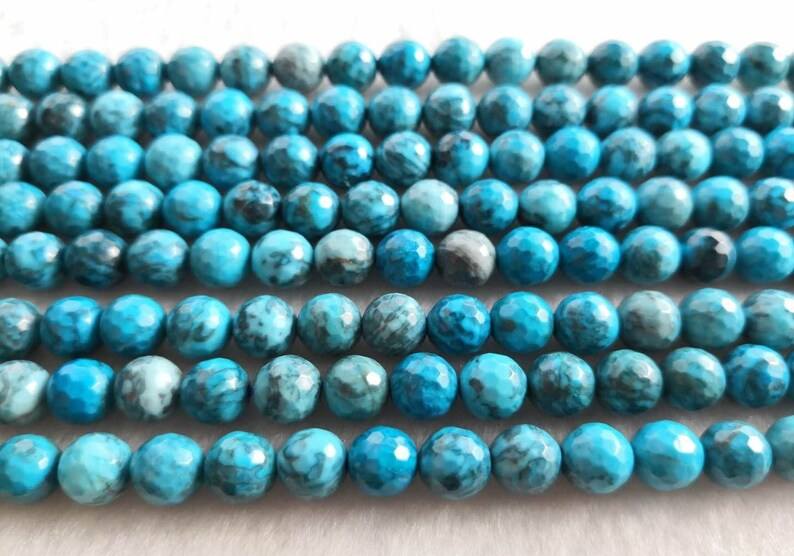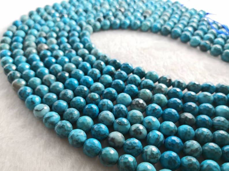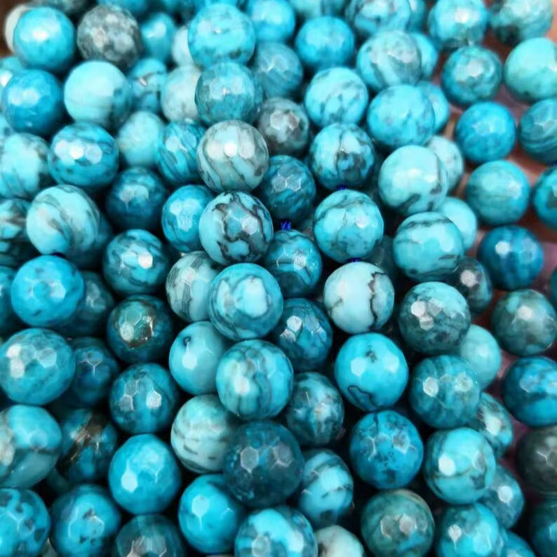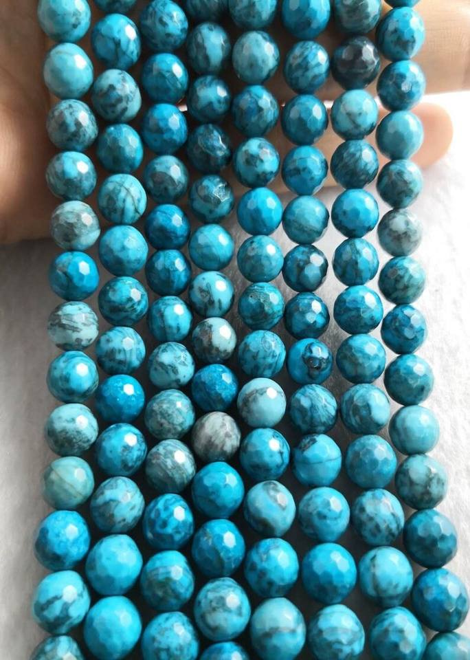 ลูกปัดอะพาไทต์สีน้ำเงินทรงกลมเหลี่ยมเพชรพลอย หินธรรมชาติ สำหรับทำเครื่องประดับ DIY