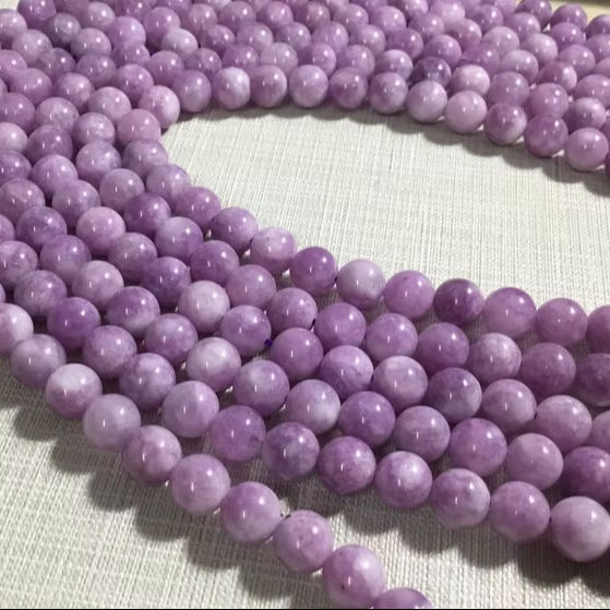 ลูกปัดหยกมาเลย์สีม่วงอ่อนทรงกลมเรียบเนียนสำหรับทำเครื่องประดับขายส่ง