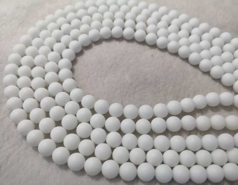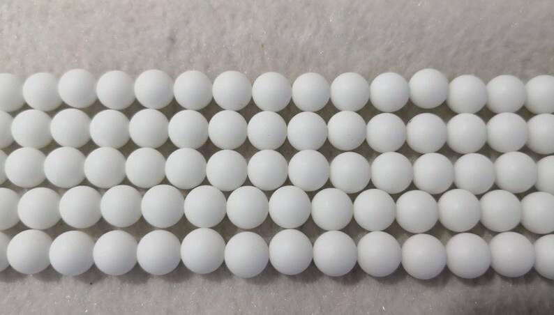 ลูกปัดหินหยกขาวทรงกลมเคลือบด้านสีขาวแบบเต็มเม็ด สำหรับทำสร้อยข้อมือ DIY