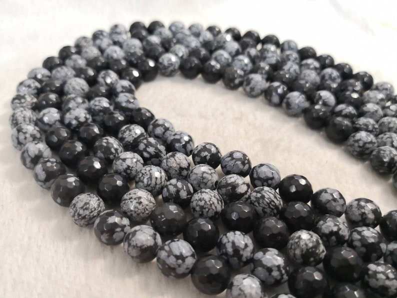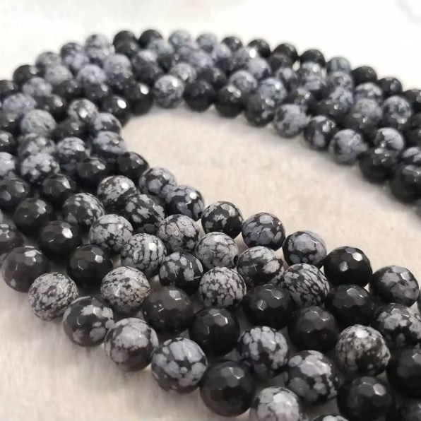 ลูกปัดหินแจสเปอร์ทรงกลมเหลี่ยมเพชรพลอยลายเกล็ดหิมะแบบเต็มเม็ด สำหรับทำเครื่องประดับ DIY ขายส่ง