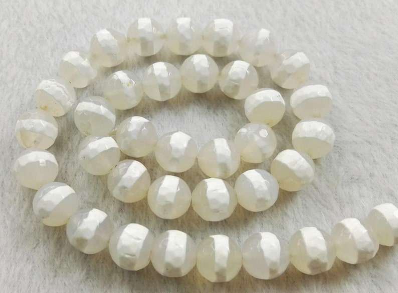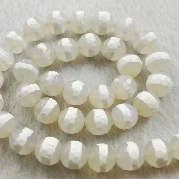 ลูกปัดหินอาเกตทิเบตธรรมชาติ สีขาวสวยงาม เหมาะสำหรับ