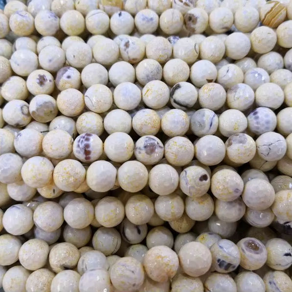 ลูกปัดหินอาเกตไฟธรรมชาติ สีขาวสวยงาม เหมาะสำหรับ