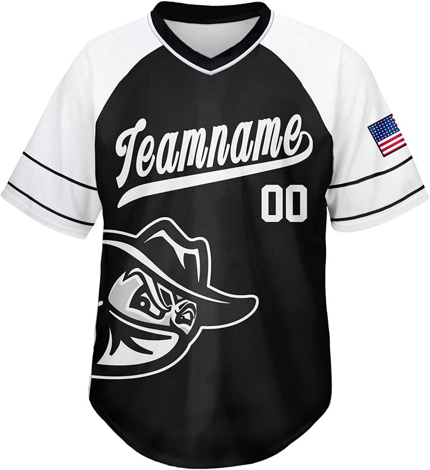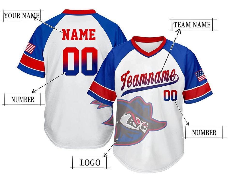 ชุดเบสบอลแบบซับลิเมชั่นเต็มตัว เสื้อกีฬา กางเกง พิมพ์ลาย ชื่อและหมายเลขส่วนตัว เสื้อเบสบอลคอวีแบบซับลิเมชั่น