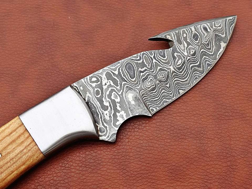 มีดเหล็กดามัสกัสแบบเต็มรูปแบบพร้อมใบมีดปลายตกตะขอเกี่ยวเหล็กแบบเข็ม