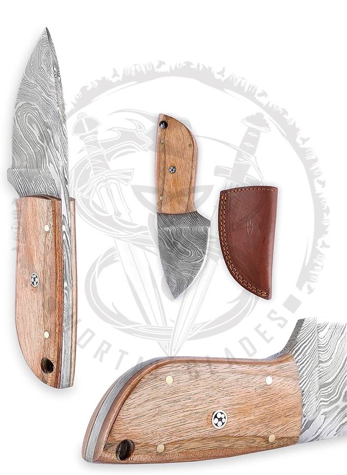มีดตั้งแคมป์ล่าสัตว์ Tang เต็มรูปแบบพร้อมใบมีดเหล็กดามัสกัสด้าสมือไม้วอลนัทกันลื่นและใบมีดคงที่พร้อมฝัก