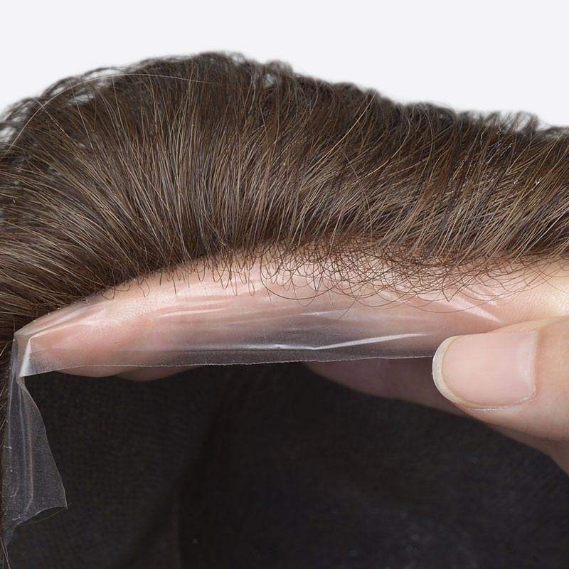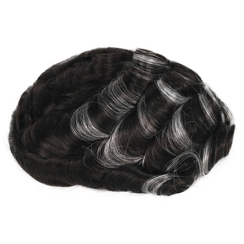 Full Thin Skin White Highlighted Wigs for Men Human Hair Men's Hair Replacement System Men's Skin Toupee