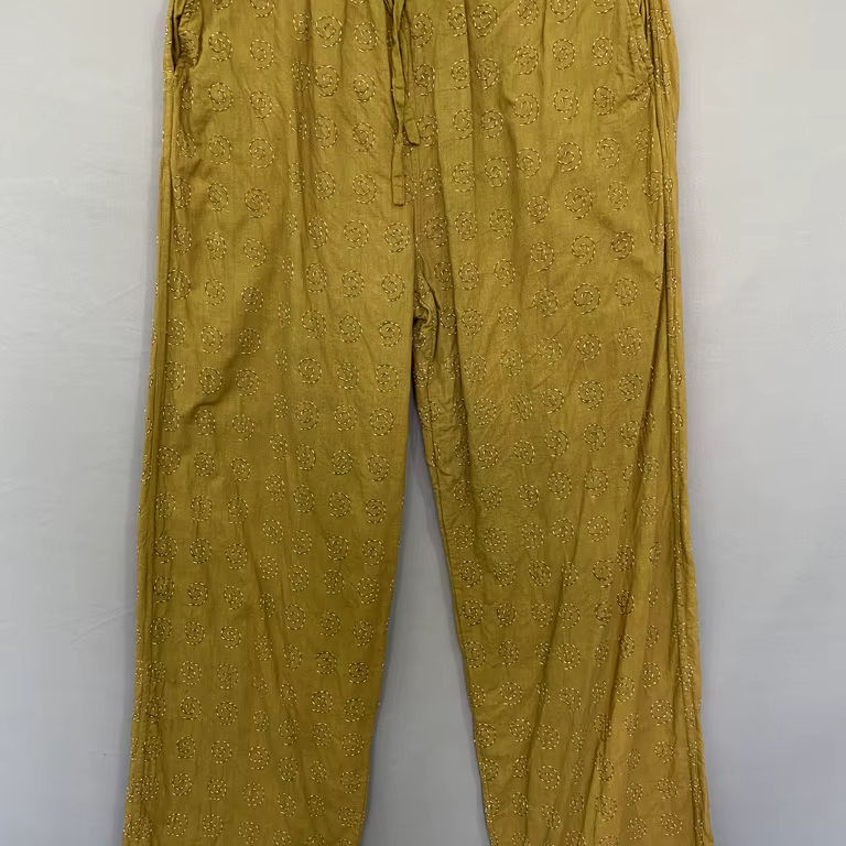 กางเกงขายาวใส่สบายสำหรับวันหยุด กางเกงโยคะสีน้ำเงินคราม กางเกงลำลองผ้าฝ้ายสำหรับผู้หญิง คุณภาพดี