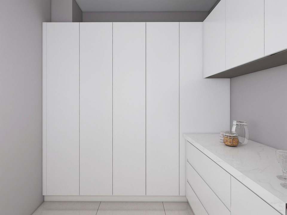 Full White Kitchen Cabinets Modern with Plywood Construction Backsplash Durable Design Pantry