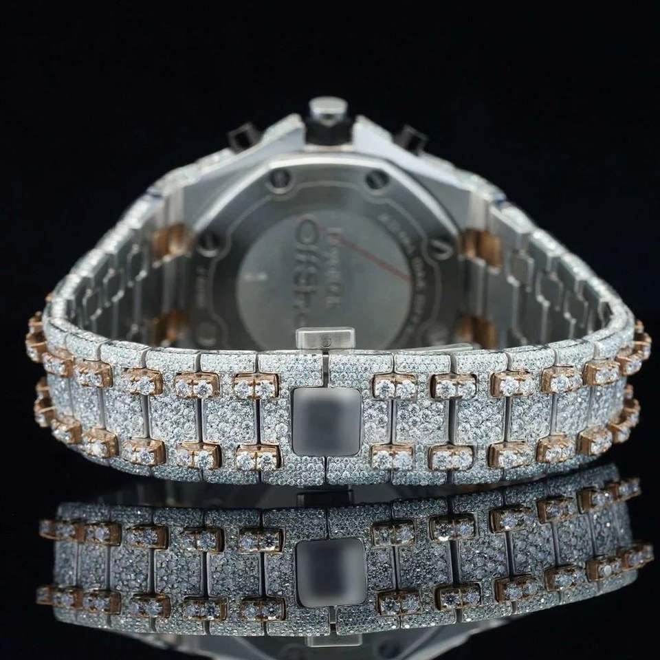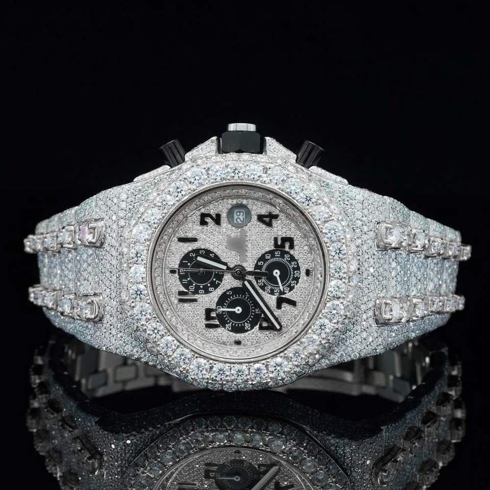 นาฬิกาโครโนกราฟเพชรโมอิสซาไนต์สีขาว VVS รุ่นลิมิเต็ดอิดิชั่น ตัวเรือนสแตนเลสสตีล หน้าปัดทรงเหลี่ยม กลไกควอตซ์ ETA