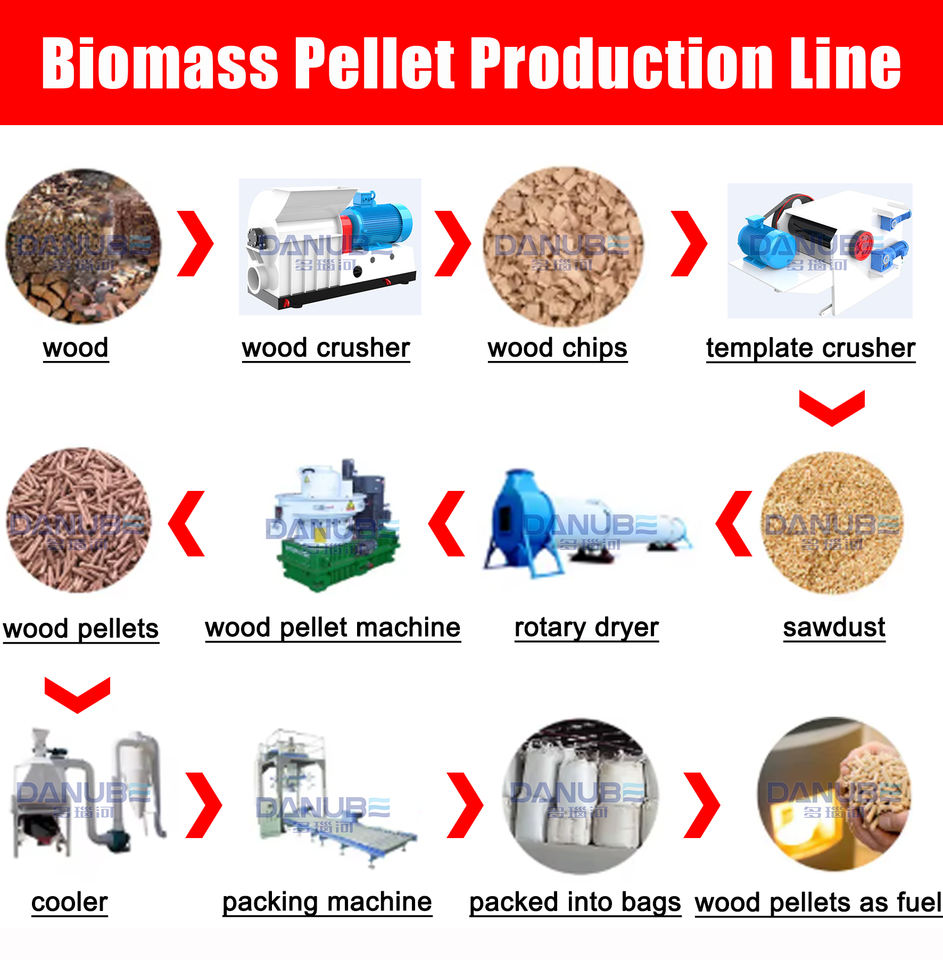 Complete Pelletizing Process:Chipping-Grinding-Drying-Pelleting-Cooling