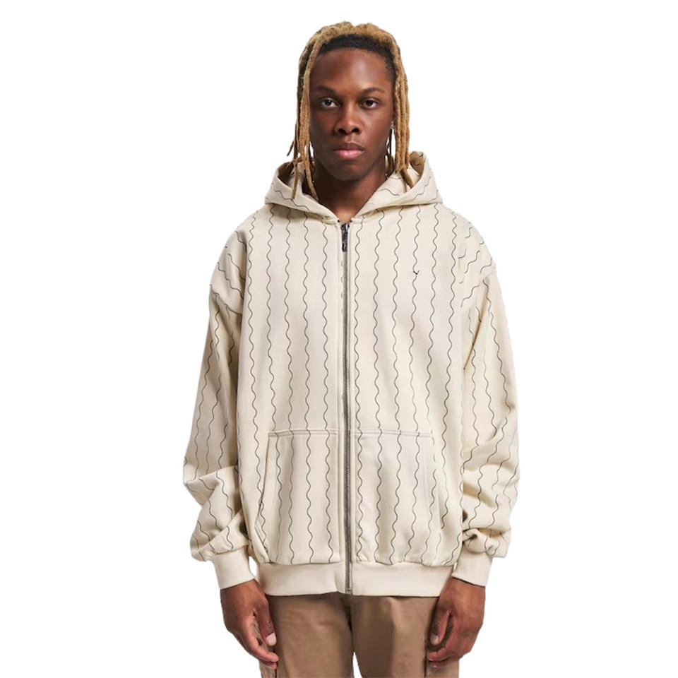 แจ็กเก็ตมีฮู้ดแนวสตรีทแวร์มีฮู้ดแนวเส้นหยักพร้อมกระเป๋าสเวตเชิ้ตลำลองไซส์ใหญ่พิเศษสำหรับแฟชั่นฤดูใบไม้ร่วงฤดูหนาว