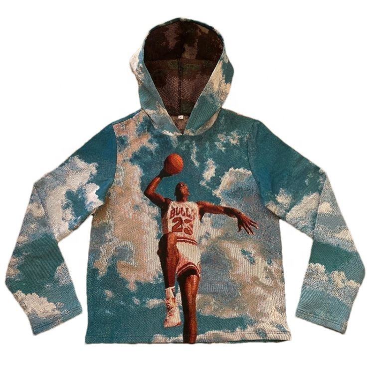 เสื้อมีฮู้ดแบบสวมหัวมีซิปขนาดใหญ่ลายบาสเก็ตบอลคนดังพรมทอ
