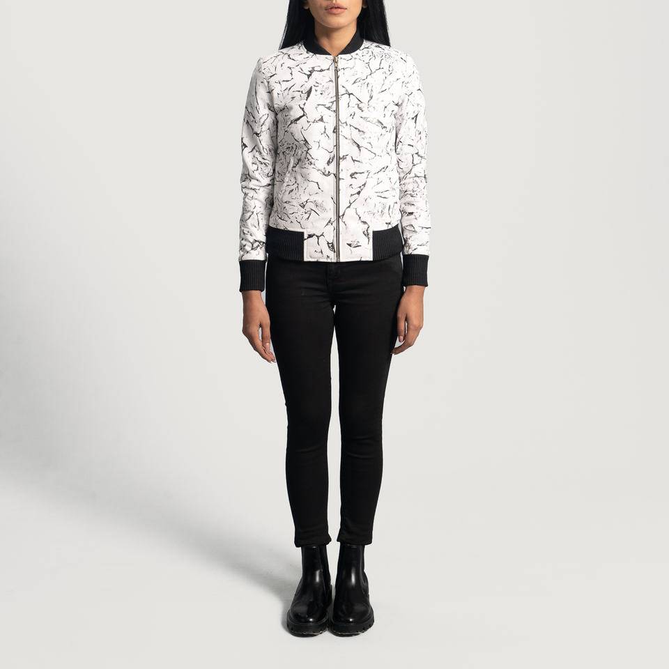 เสื้อแจ็กเก็ตหนังแท้สำหรับผู้หญิงสีดำ/ สีขาวมีซิปรูดดีไซน์แฟชั่นใหม่