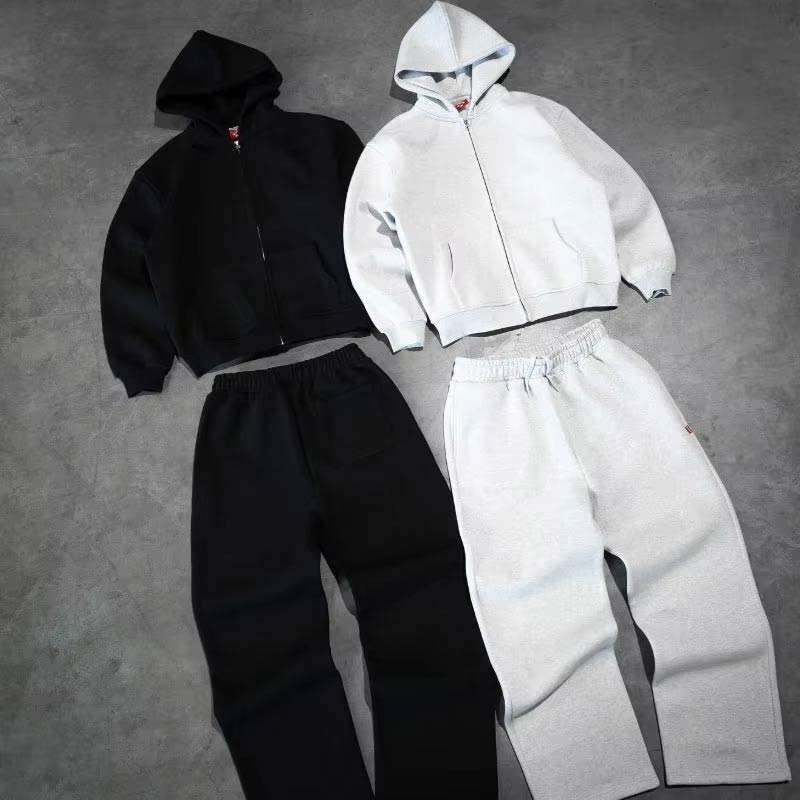 ชุดวอร์มสองชิ้นแบบซิปเต็มตัว ขากว้าง ผ้าเฟรนช์เทอร์รี่เนื้อนุ่ม ผ้าฝ้ายเนื้อหนัก 450 แกรม สำหรับผู้ชาย สไตล์สตรีทแวร์