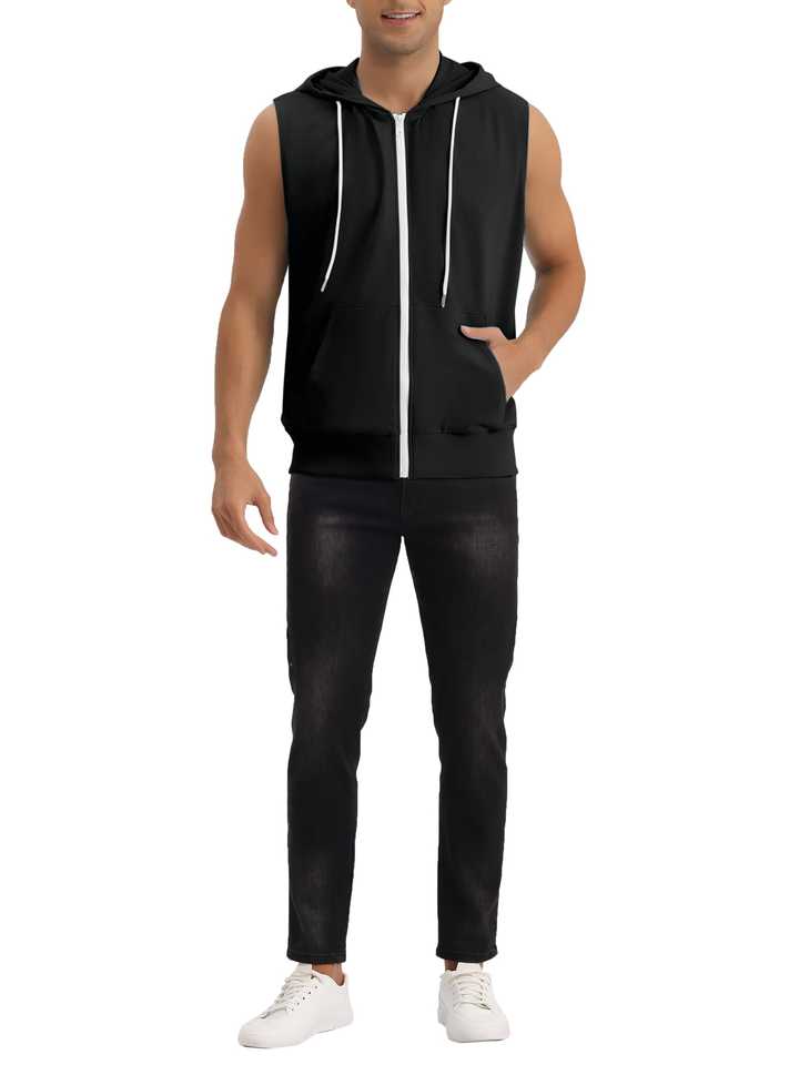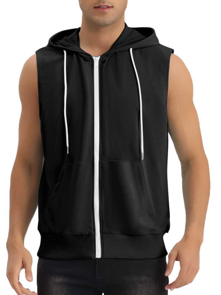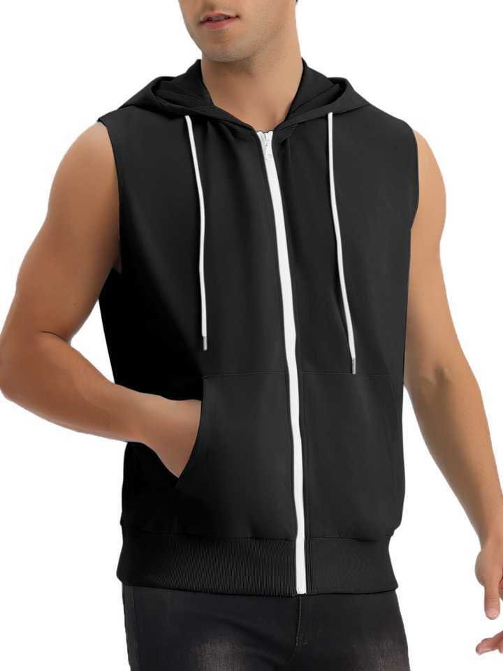 เสื้อฮู้ดแขนกุดผู้ชาย