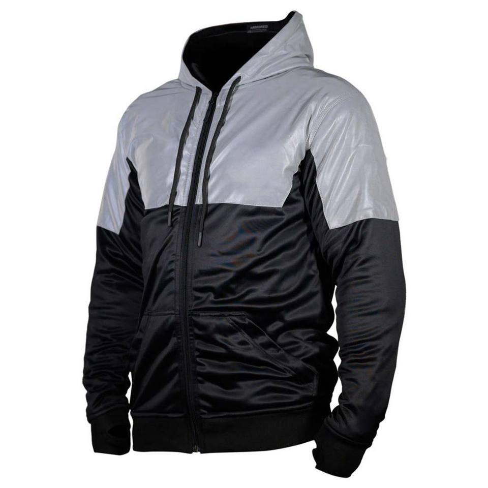 เสื้อฮู้ดมอเตอร์ไซค์สีดำแบบซิปเต็มตัว เสื้อแจ็คเก็ตมอเตอร์ไซค์ป้องกันร่างกายสำหรับฤดูหนาว บุขนแกะ เสื้อฮู้ดกีฬา