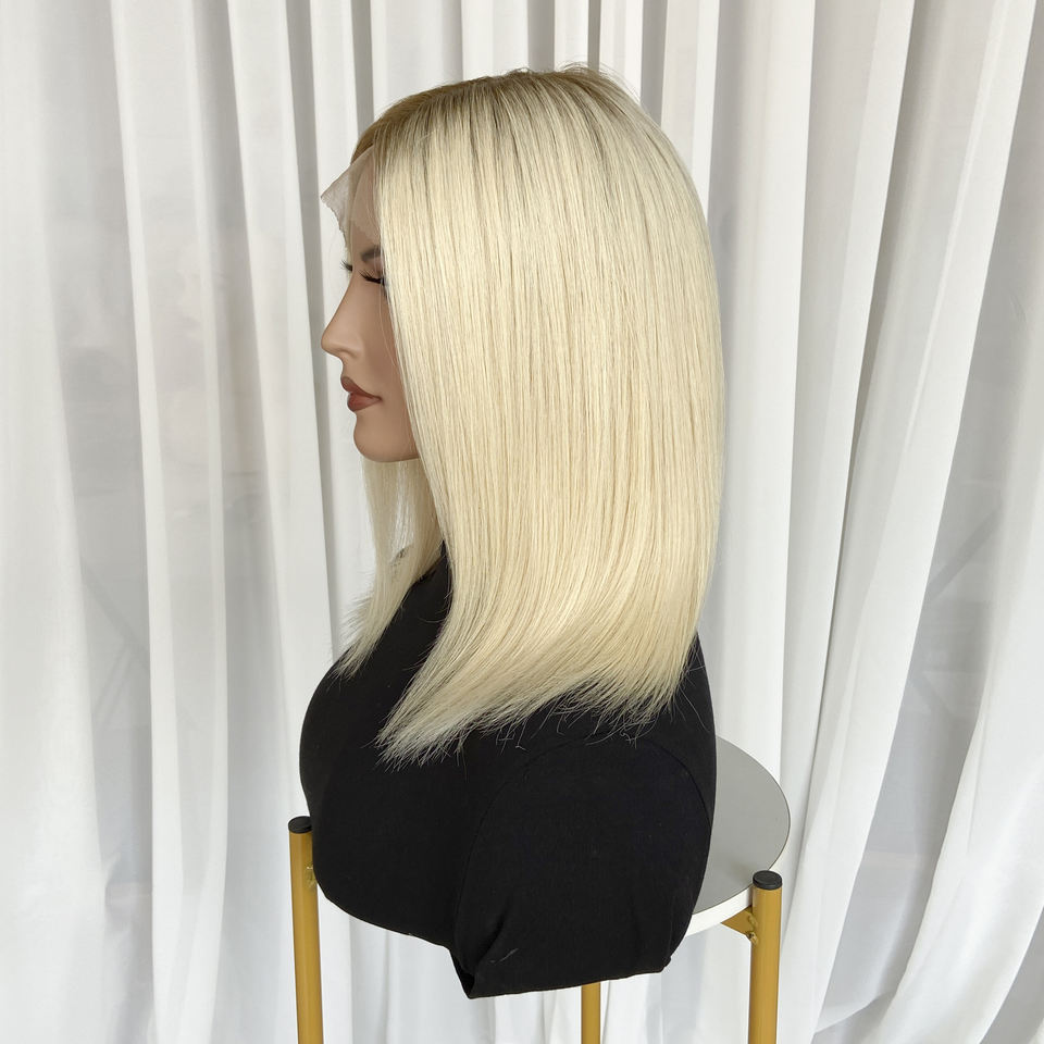 วิกผมคนแท้แบบเต็มฝาปิดวิกผมแท้มีลูกไม้ด้านหน้าฐานด้านบนสำหรับผู้หญิงวิกทางการแพทย์ผมธรรมชาติมองไม่เห็น