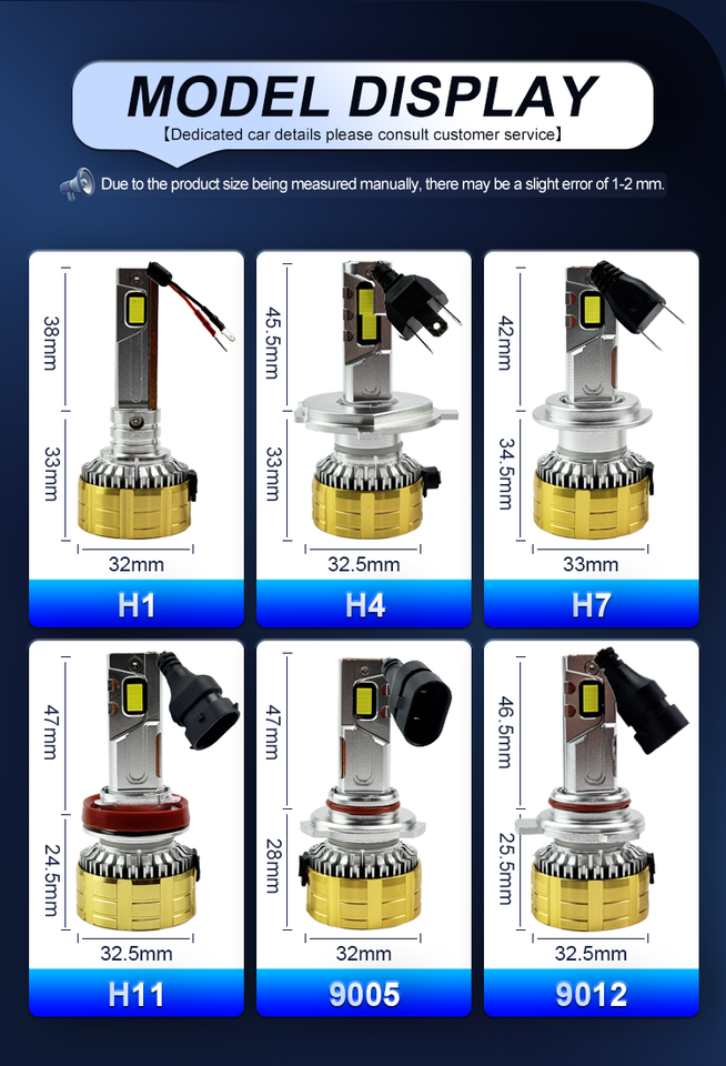 รหัสรูปทรงหลอดไฟ:H1 H4 H7 H11 9005 9012