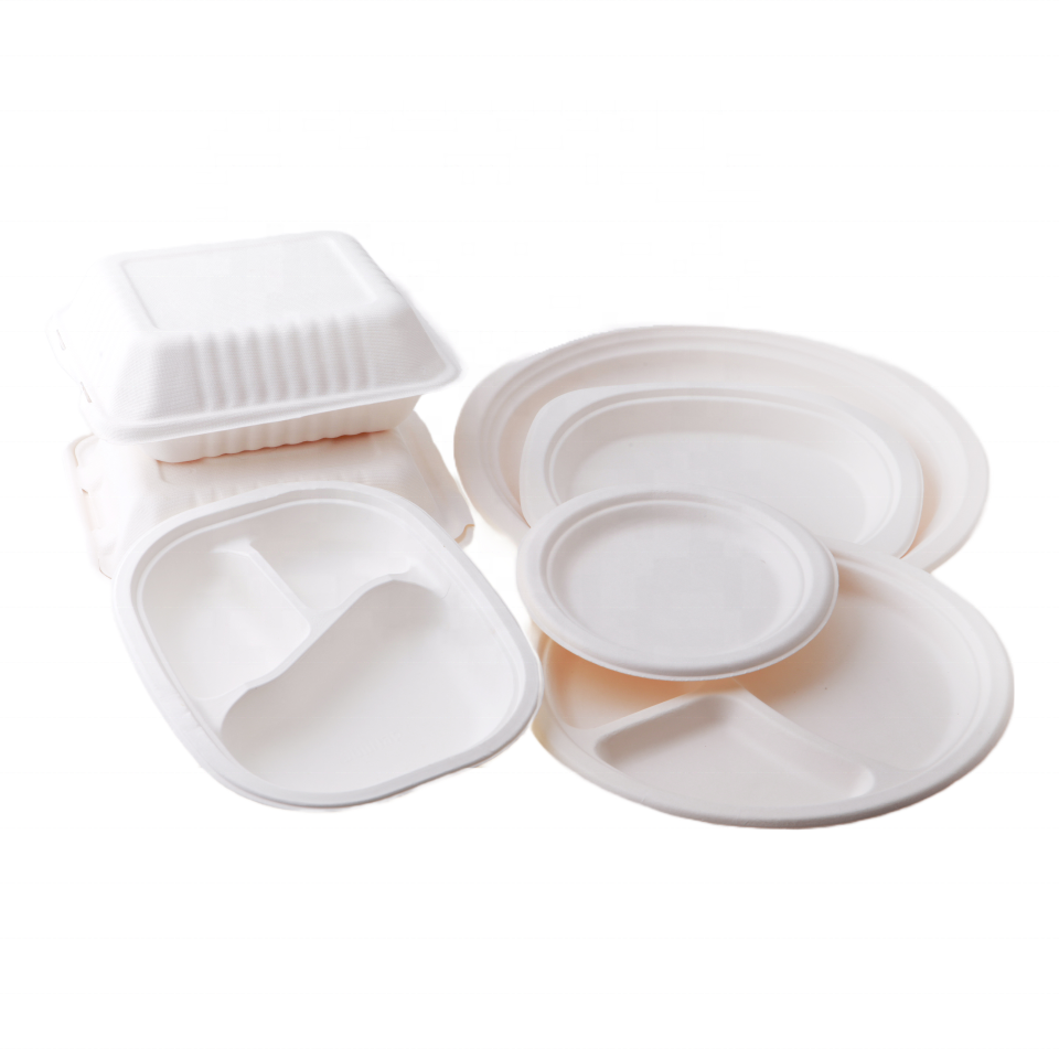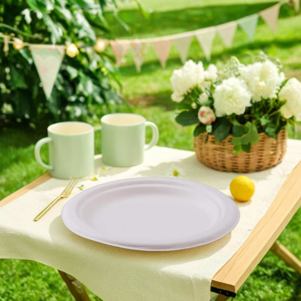 จานกระดาษทรงกลมขนาด 6 นิ้ว ผลิตจากชานอ้อย เกรดอาหาร ย่อยสลายได้ทางชีวภาพ สำหรับงานเลี้ยง บรรจุภัณฑ์อาหารแบบนำกลับบ้าน จีน ไทย