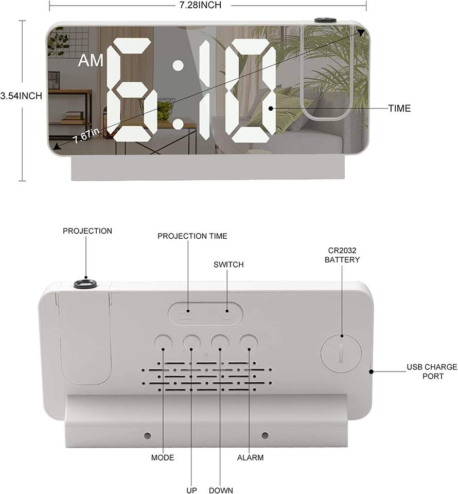 ชื่อ:นาฬิกาปลุกดิจิตอลพร้อมโปรเจคเตอร์ LED และแสดงอุณหภูมิ