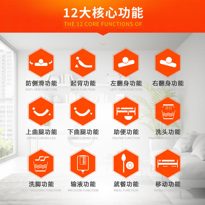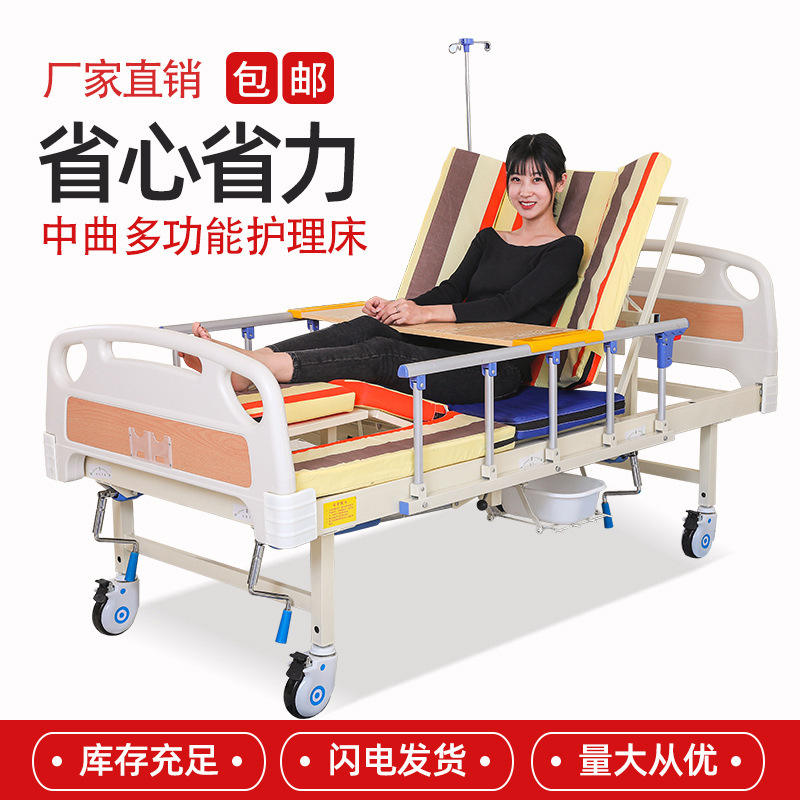 เตียงผู้ป่วยอเนกประสงค์ปรับได้เต็มที่ สำหรับผู้สูงอายุที่เป็นอัมพาต ใช้ในบ้าน หมุนได้ด้วยมือหมุน ผลิตเพื่อความสะดวกสบาย