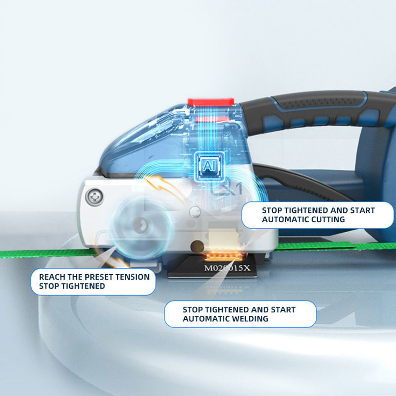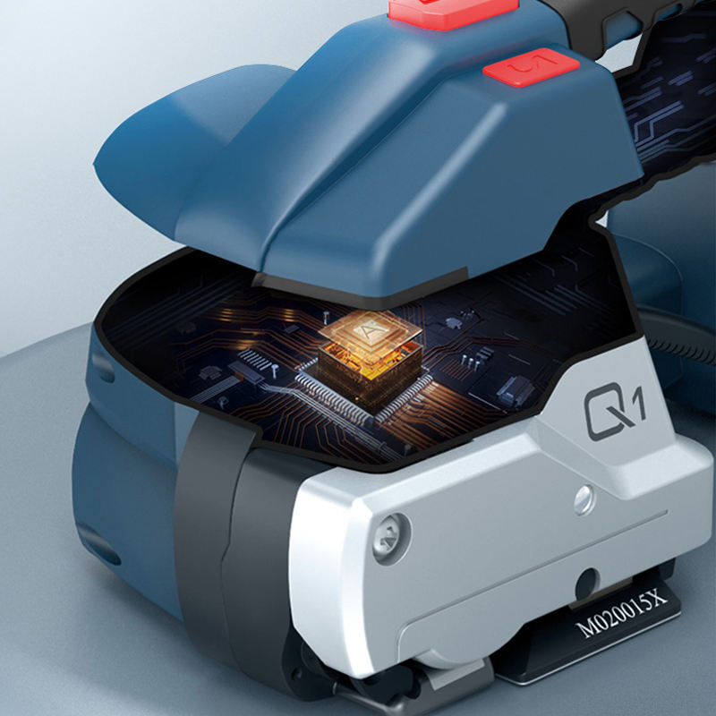 เครื่องรัดกล่องอัตโนมัติเต็มรูปแบบ แรงดึงสูง ใช้สายรัด PET ใช้พลังงานจากแบตเตอรี่ รุ่น Q1 แบบมือถือ