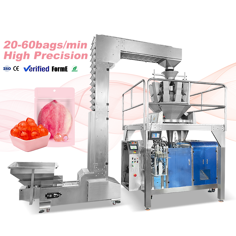 เครื่องบรรจุขนมกัมมันต์ช็อคโกแลตอัตโนมัติเครื่องบรรจุถุงทำขนมเครื่องบรรจุถุง doypack