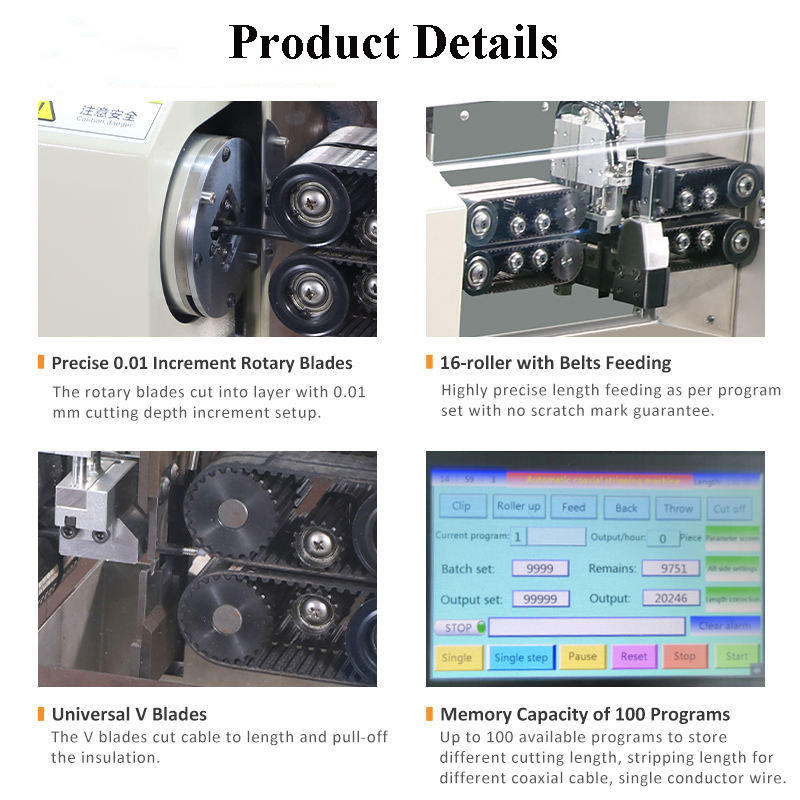 เครื่องตัดและปอกสายโคแอกเชียลอัตโนมัติเต็มรูปแบบ อุปกรณ์ปอกสายเคเบิลเดี่ยวสำหรับสายเคเบิลขนาดเส้นผ่านศูนย์กลางภายนอก 1-6 มม. สำหรับการผลิต