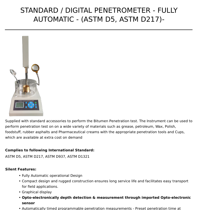 Fully Automatic Digital Penetrometer for Bitumen Grease Petroleum Wax Polish-New Standard Made Steel Industrial Metal Detector