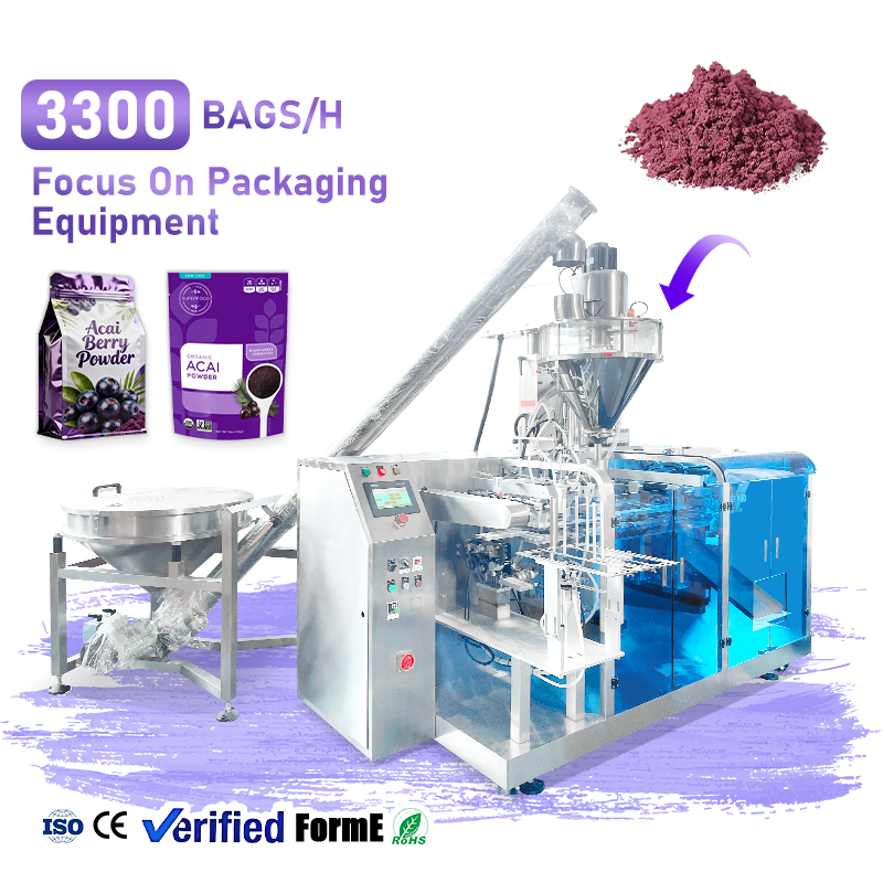 เครื่องบรรจุผงแบบอัตโนมัติเต็มรูปแบบสำหรับบรรจุในถุงโดយแพ็คสำเร็จรูป เครื่องบรรจุผงอะไซเบอร์รี่