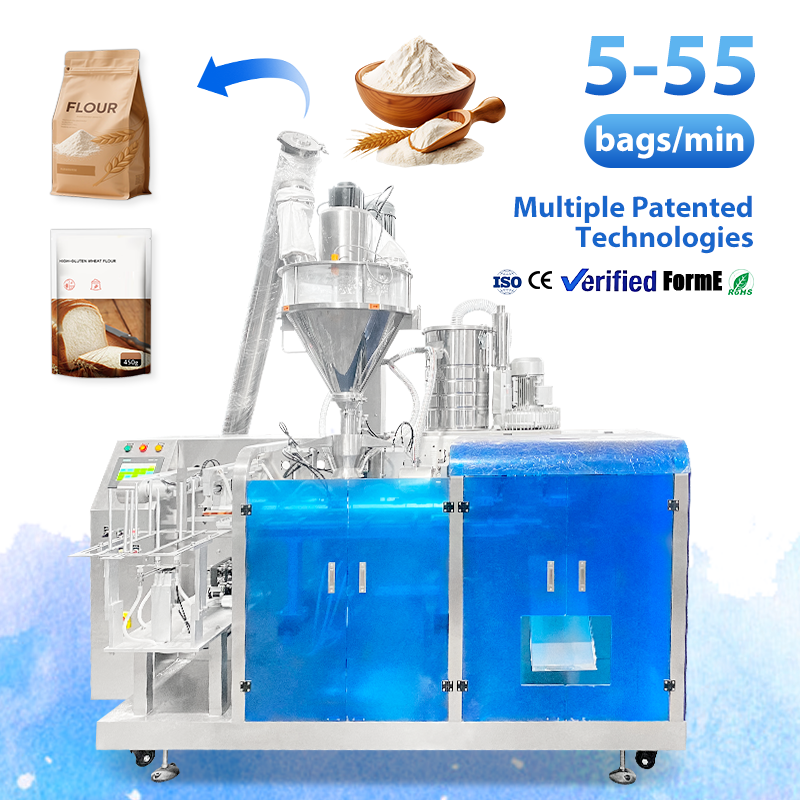 เครื่องบรรจุแบบอัตโนมัติเต็มรูปแบบสำหรับบรรจุภัณฑ์แบบซอง Doypack สำหรับบรรจุโปรตีนจากข้าวสาลี นมผง บรรจุและปิดผนึก