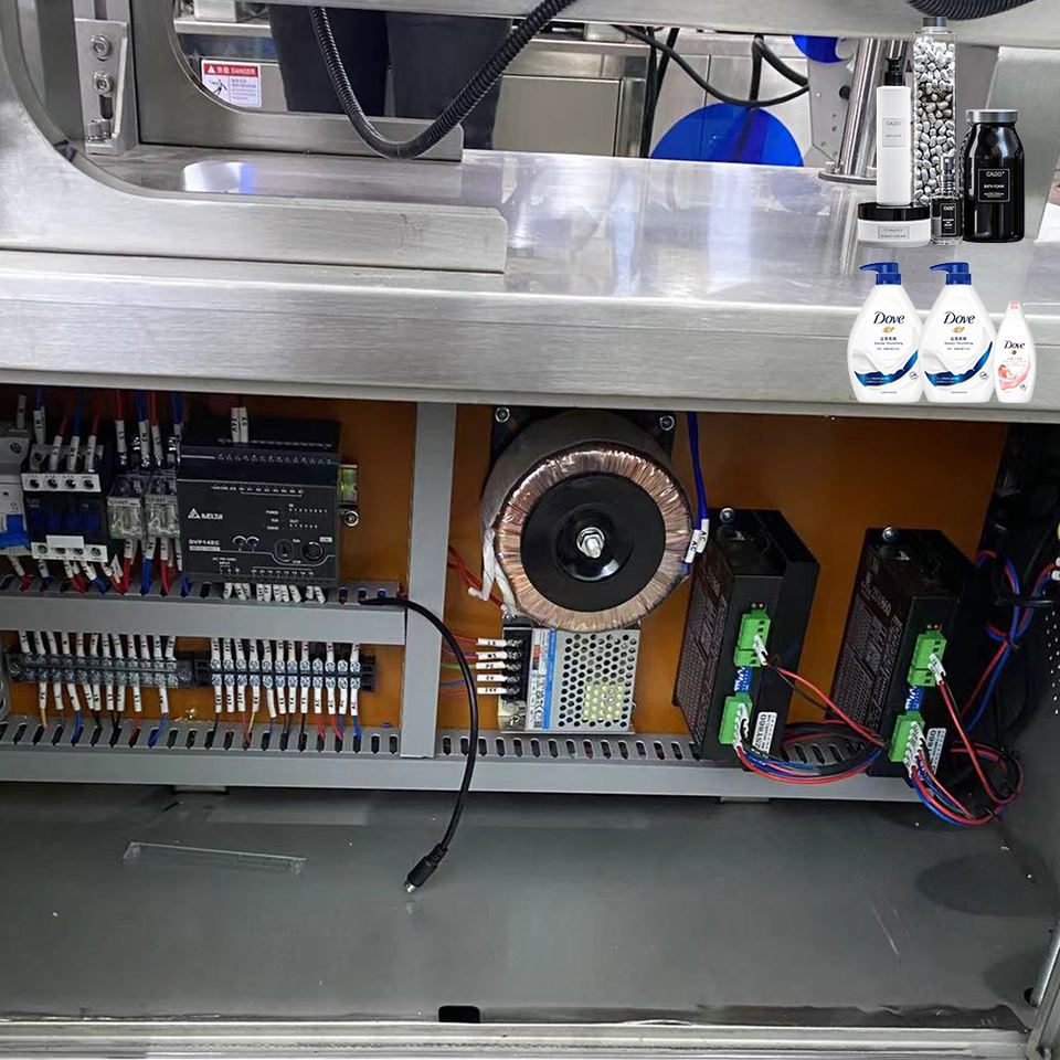 เครื่องบรรจุและปิดฝาขวดขนาดเล็กแบบอัตโนมัติเต็มรูปแบบ ขับเคลื่อนด้วยเครื่องยนต์ สำหรับน้ำมัน เจล กาว และเครื่องดื่ม ใช้งานง่ายในสายการผลิต