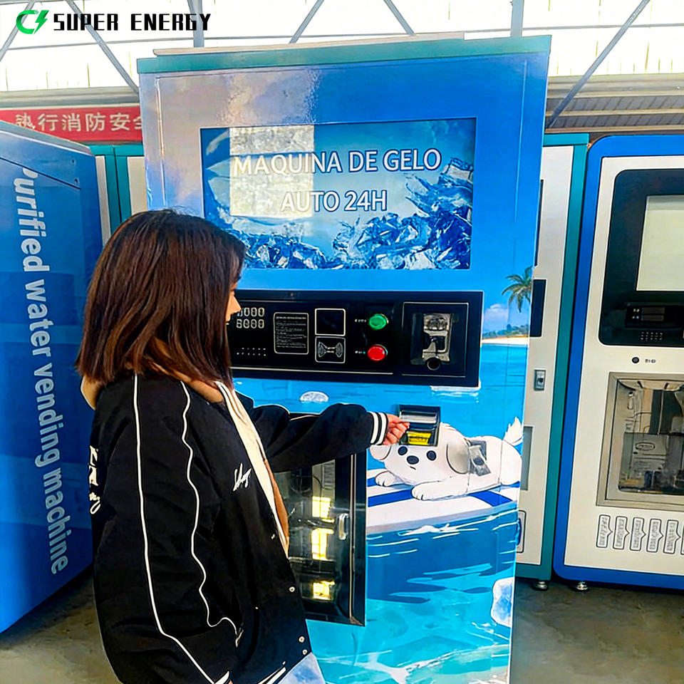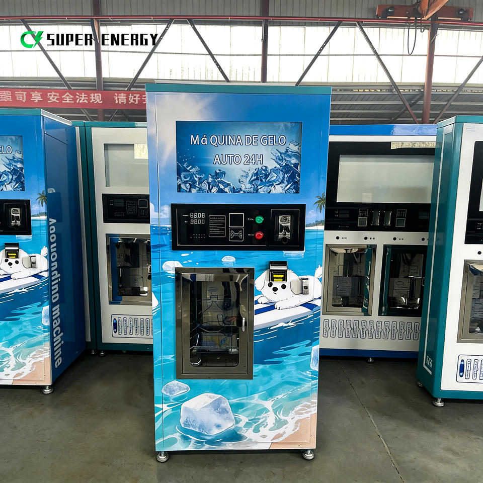 เครื่องจำหน่ายน้ำแข็งอัตโนมัติพร้อมระบบบรรจุและปิดผนึกถุงสำหรับธุรกิจน้ำแข็ง