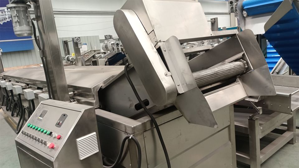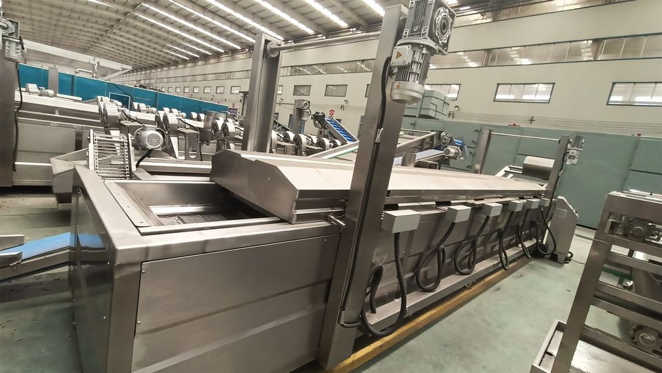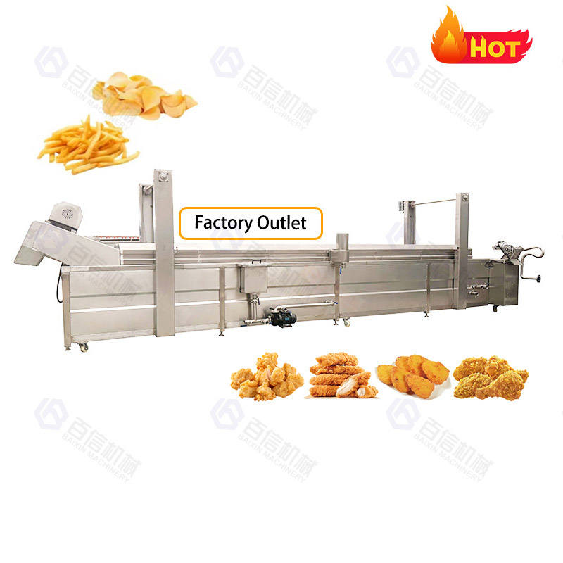 เครื่องทำเฟรนช์ฟรายแช่แข็งแนวอุตสาหกรรมอัตโนมัติเครื่องทอดมันฝรั่งทอดสดแบบต่อเนื่อง