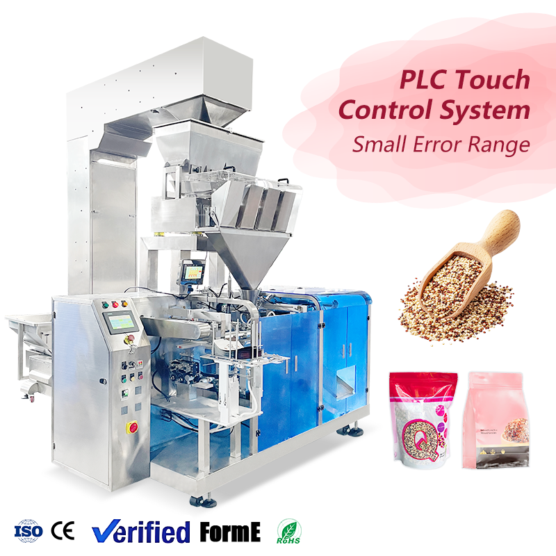 เครื่องบรรจุภัณฑ์เม็ดแบบอัตโนมัติเต็มรูปแบบ เครื่องชั่งน้ำหนักแบบเส้นตรง สำหรับข้าวโอ๊ต เมล็ดกาแฟ บรรจุในถุงซิปและถุงโดយแพ็ค พร้อมระบบปิดผนึก