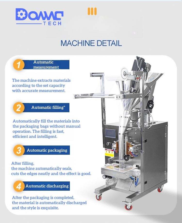 เครื่องบรรจุผงปรุงรสอัตโนมัติเต็มรูปแบบสำหรับนม แป้ง เครื่องเทศ พริก กาแฟ แบบซอง พร้อมระบบชั่งน้ำหนัก บรรจุ และปิดผนึก