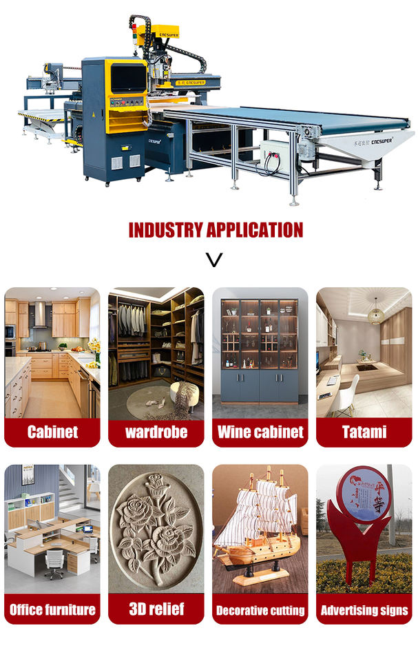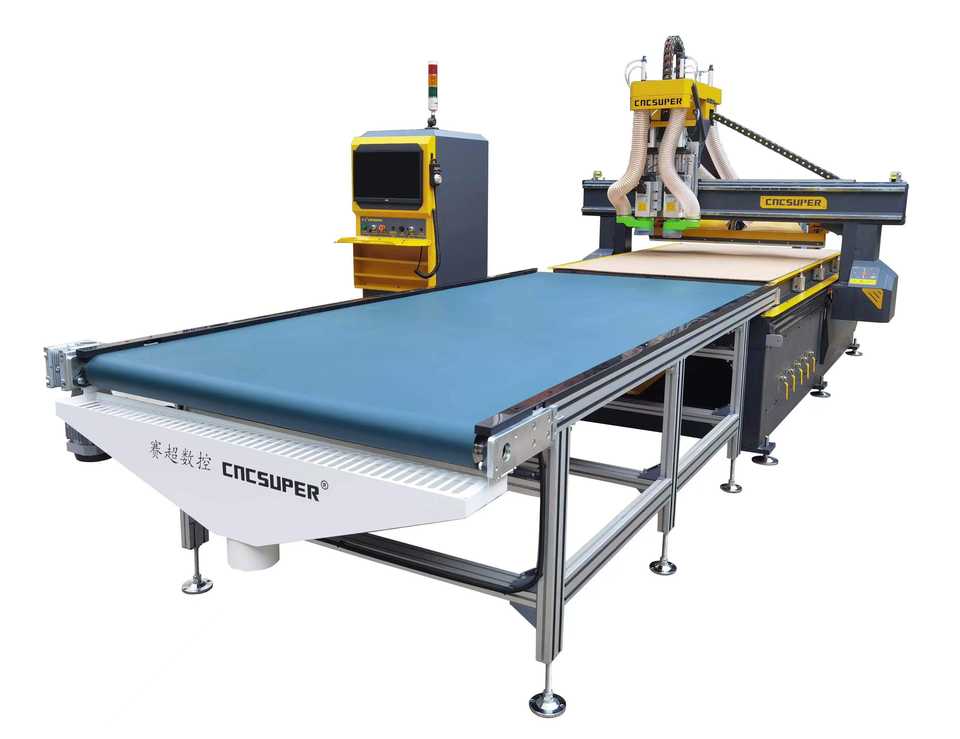 เครื่องเราเตอร์ CNC แบบอัตโนมัติเต็มรูปแบบ พร้อมระบบโหลดและปลดโหลดอัตโนมัติ และระบบติดฉลาก สำหรับงานเฟอร์นิเจอร์ไม้ ป้ายโฆษณา และงานตกแต่ง