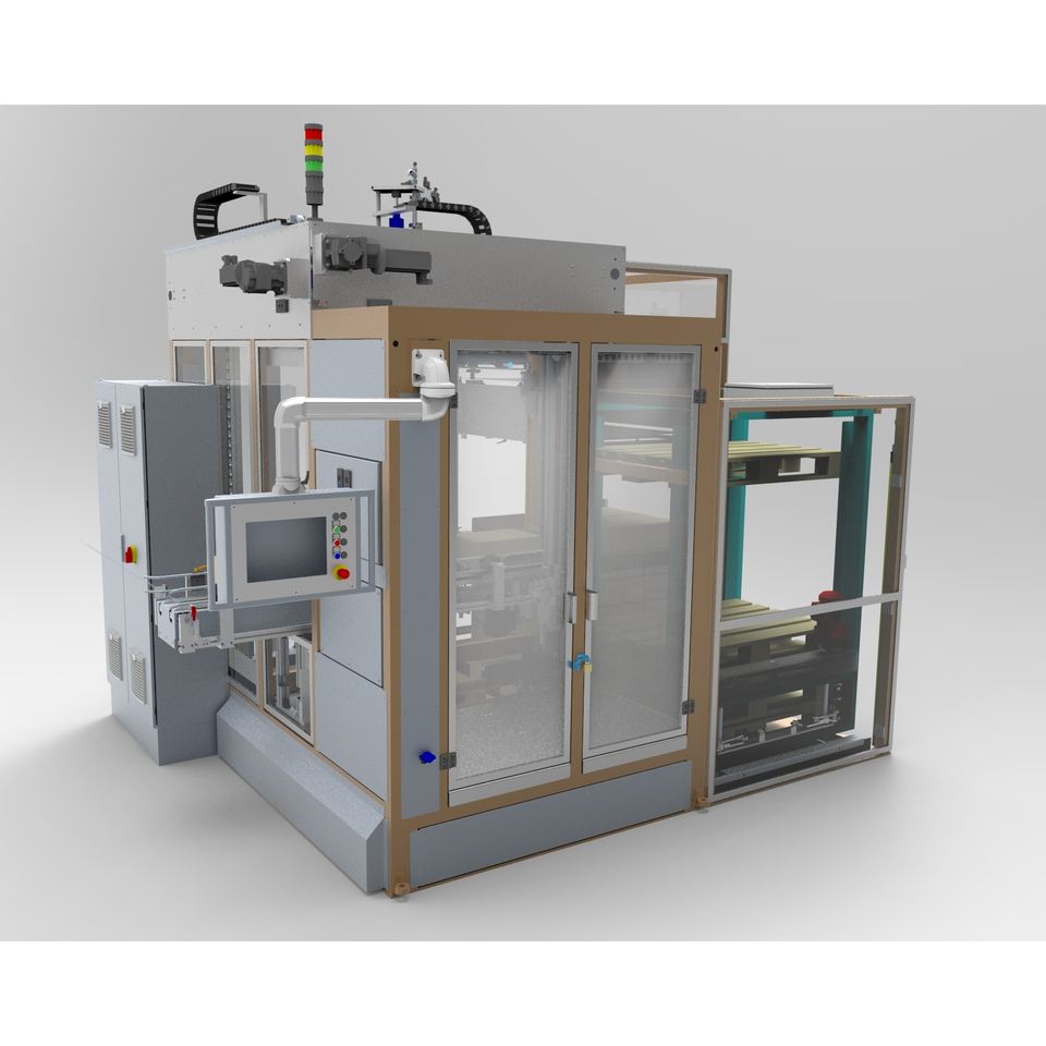 เครื่องจัดเรียงพาเลทอัตโนมัติเต็มรูปแบบสำหรับสายการบรรจุภัณฑ์ปลายสายการผลิต อุปกรณ์เหล็กประหยัดพื้นที่สำหรับกล่องบรรจุภัณฑ์ภายนอก ถาด ถุง และกระป๋อง