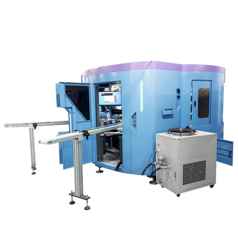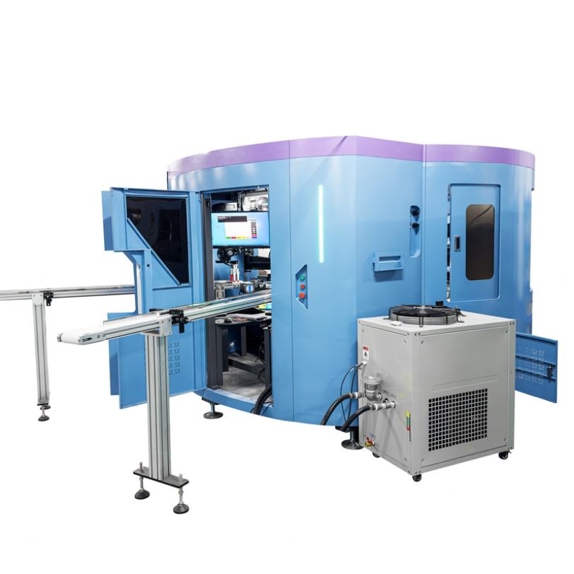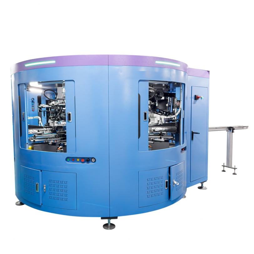 เครื่องพิมพ์สกรีนแบบโรตารี่สามสีอัตโนมัติเต็มรูปแบบ พร้อมระบบกำหนดตำแหน่ง CCD สำหรับขวด