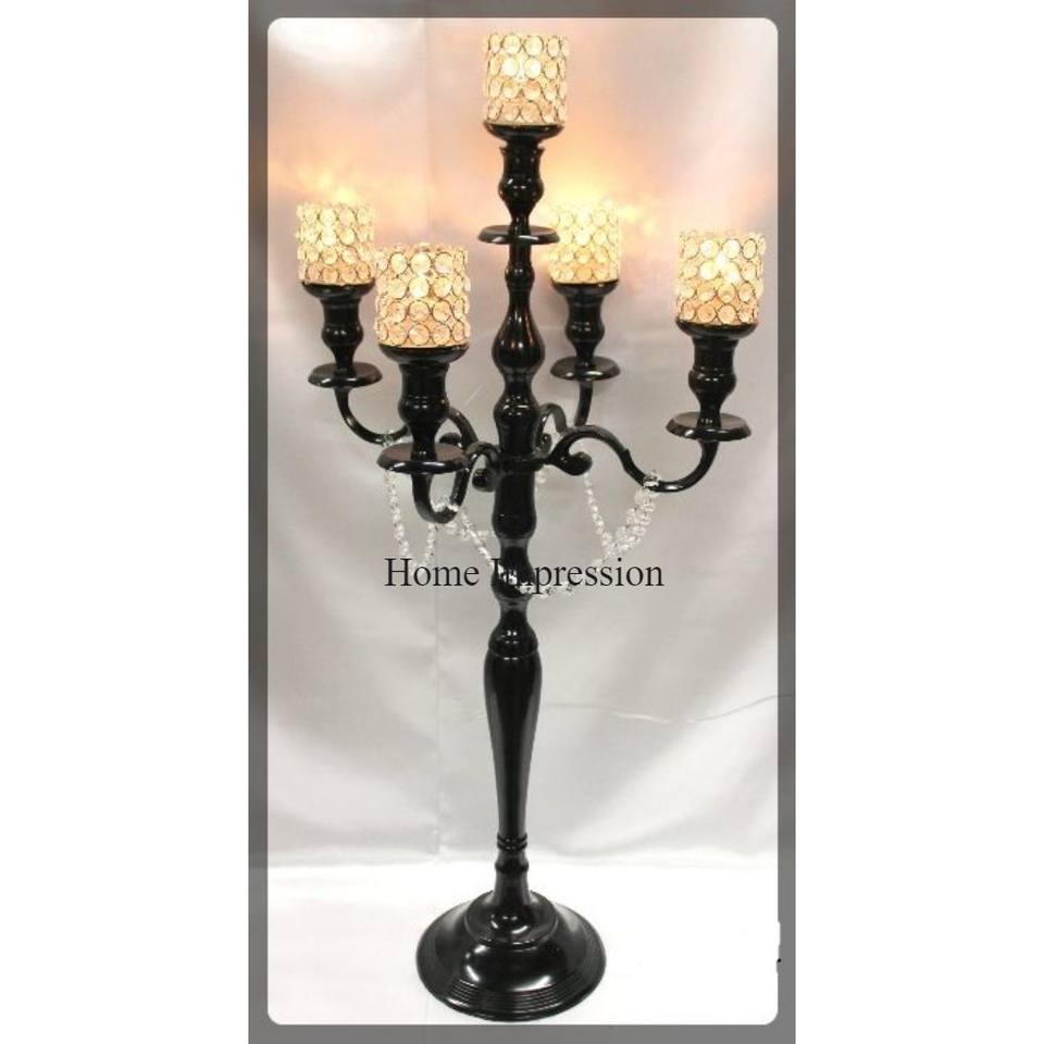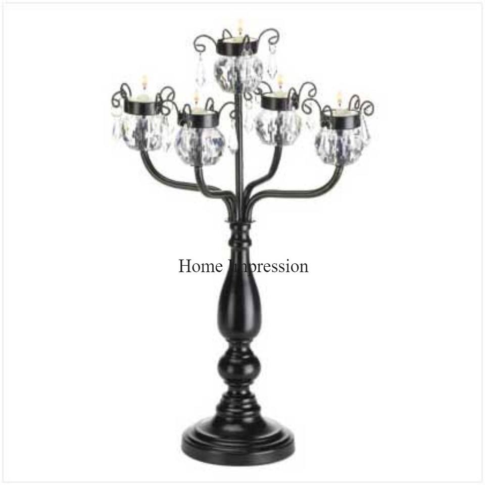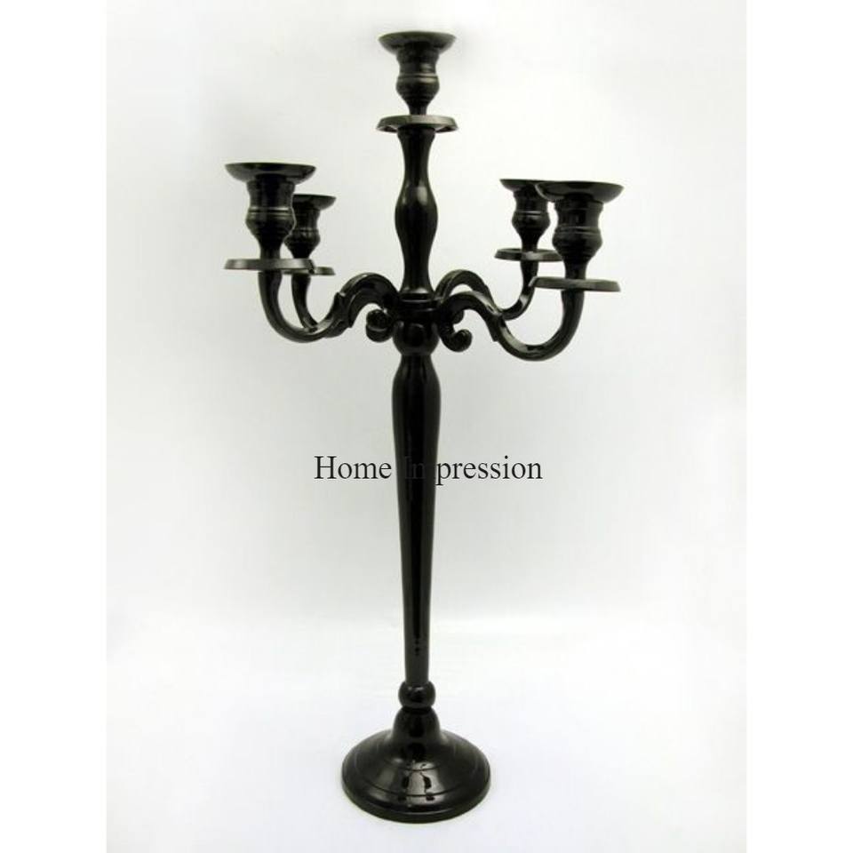 เชิงเทียนเคลือบผงสีดำทั้งหมดดูหรูหราวัสดุตกแต่งสำหรับงานรื่นเริงและงานเลี้ยง