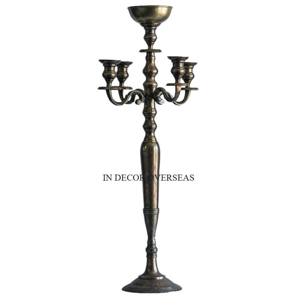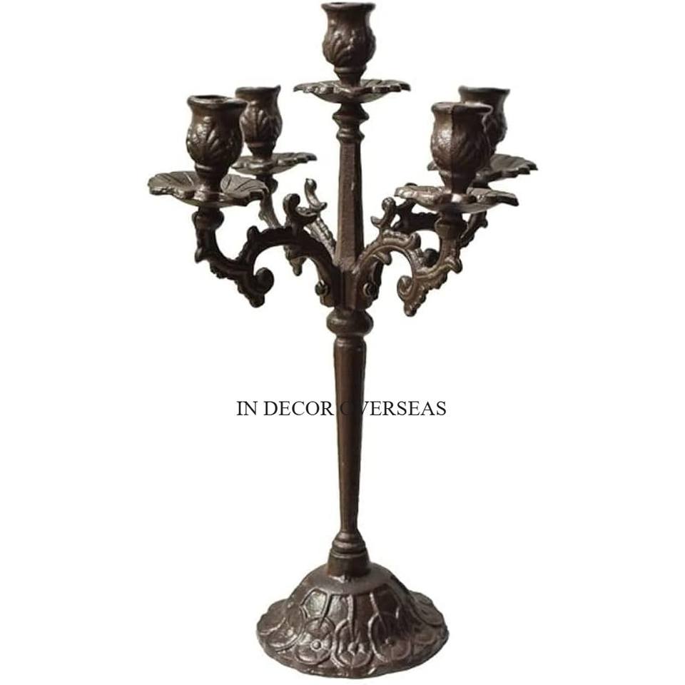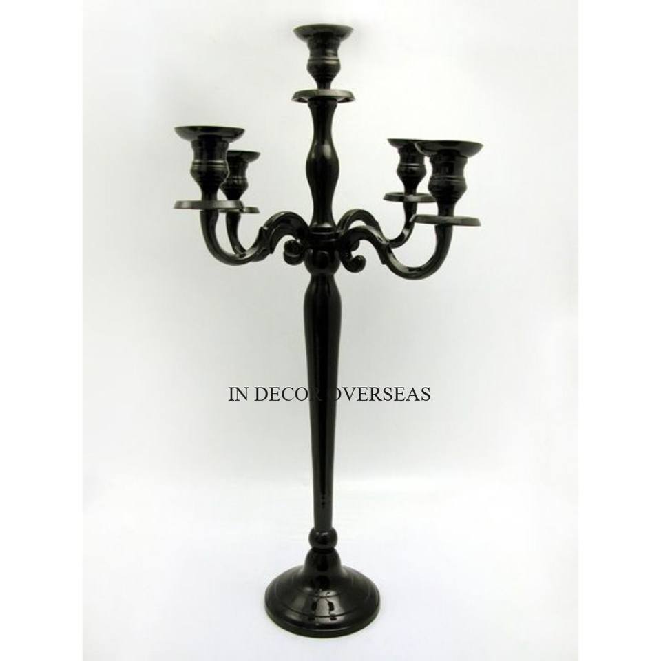 เชิงเทียนโลหะ5แขนเคลือบผงสีดำสนิทสำหรับตกแต่งงานแต่งงาน