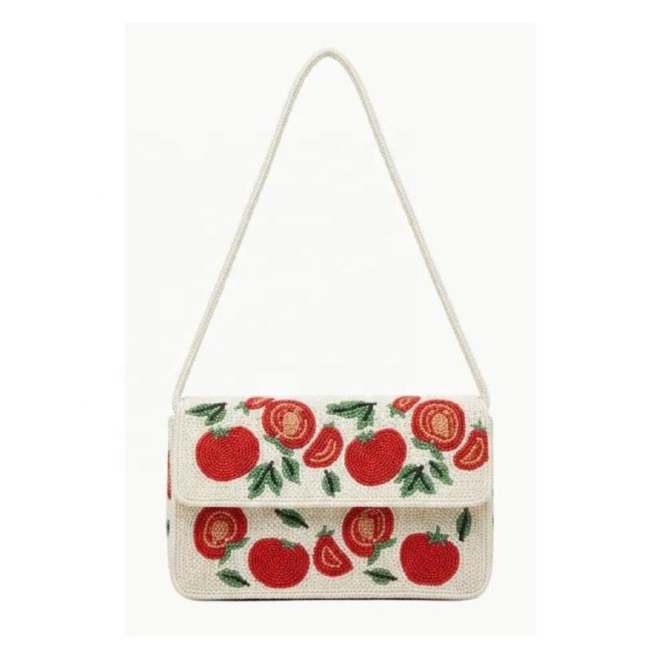 กระเป๋าสะพายลายดอกไม้สายเดี่ยวประดับลูกปัดแก้วแบบเต็มใบ ปิดด้วยแม่เหล็ก งานประดับลูกปัดประณีต เหมาะสำหรับงานปาร์ตี้ริมชายหาดฤดูร้อนและใช้ในออฟฟิศ