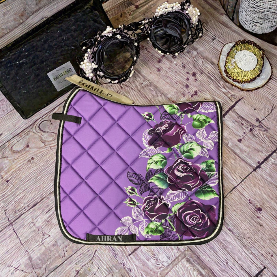 แผ่นรองอานม้าสำหรับขี่ม้ากระโดดและเดรสสาจ ออกแบบลายดอกไม้ได้ตามต้องการ แห้งเร็ว ระบายอากาศได้ดี บุด้วยผ้าฟลีซโพลีเอสเตอร์ บรรจุใยฝ้าย