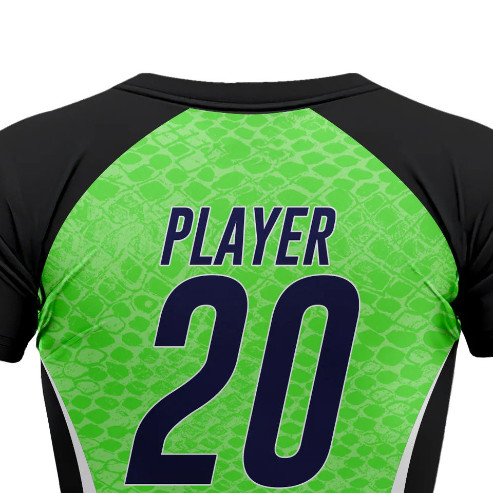 เสื้อซอฟต์บอลคอกลมแบบสั่งทำพิเศษ สีดำ-ทองโบราณ พิมพ์ลายแบบซับลิเมชั่นทั้งตัว แบบสองกระดุม สำหรับทุกเพศ ต้านเชื้อแบคทีเรีย ลดราคา
