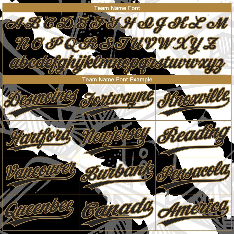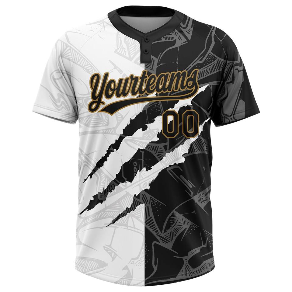เสื้อซอฟต์บอลคอลูกเรือป้องกันแบคทีเรียสำหรับทั้งชายและหญิงลายกราฟฟิตีแบบระเหิดสีทองสีดำเก่า3D สองปุ่ม